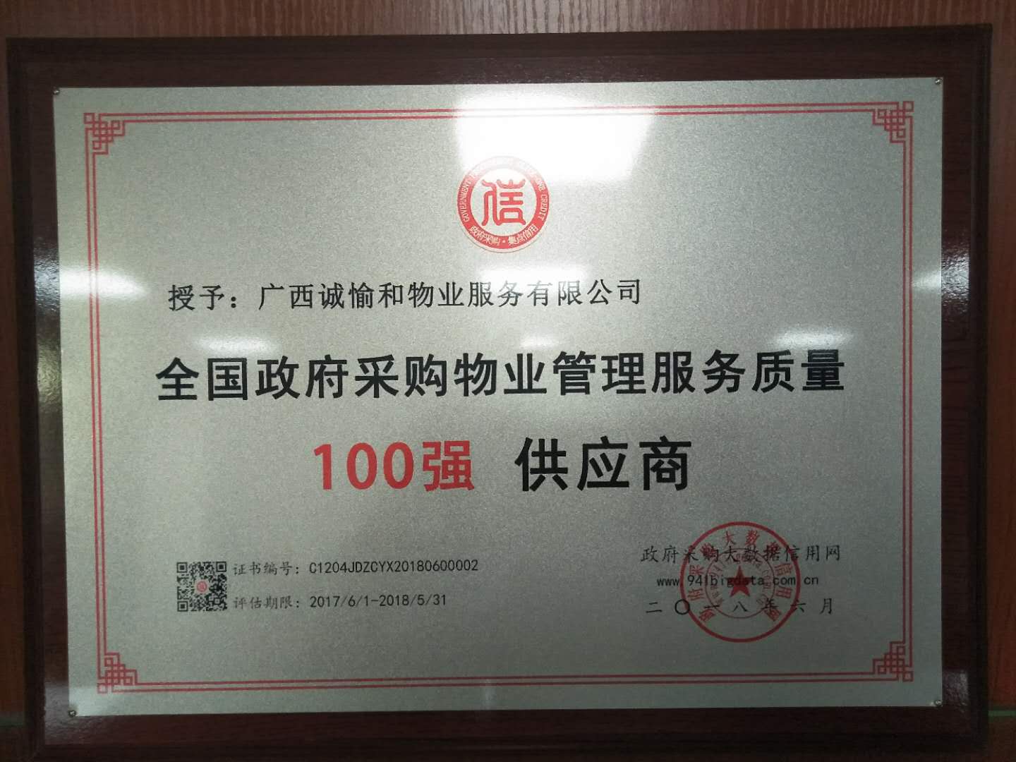 全國(guó)政府采購(gòu)物業(yè)管理服務(wù)質(zhì)量100強(qiáng)供應(yīng)商
